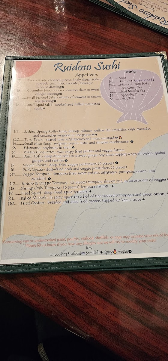 Ruidoso Sushi offers a diverse menu that caters to sushi lovers and enthusiasts of Japanese cuisine alike. The hot appetizers feature delightful options that shouldn't be missed. The Small Miso Soup is a fragrant blend brimming with tofu, green onions, and shiitake mushrooms, a soothing start for just $5. Meanwhile, the Dashi Tofu—deep-fried tofu drizzled with sweet ginger soy—is a heavenly treat that encapsulates the essence of comfort food at $9.